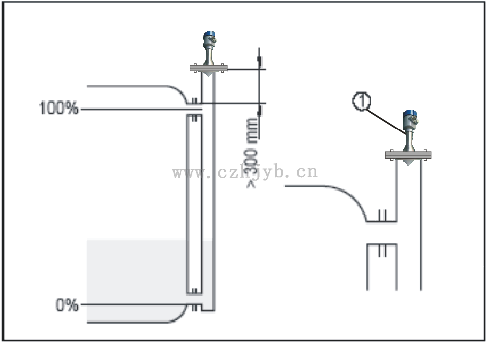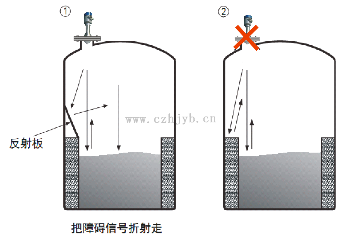 Ø 當(dāng)罐中有障礙物影響測(cè)量時(shí),要加裝反射板才能正常測(cè)量。