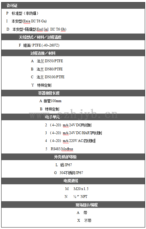 過(guò)程溫度(天線(xiàn)部分的溫度) (-40~260)℃